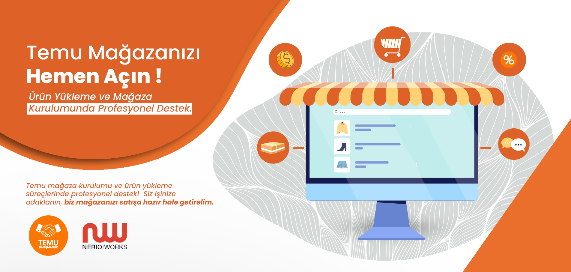 Müşterilerinizin dijital alışveriş deneyimini en üst düzeye çıkaracak, güvenli ve ölçeklenebilir e-ticaret platformları oluşturuyoruz. Nerio Works olarak, satış dönüşüm oranlarınızı arttırıyoruz.